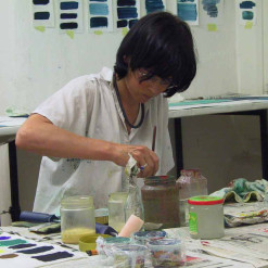 Die von Barbara Schulte-Zurhausen verwendete Technik, natürliche wie auch synthetische Farbstoffe als Pigmente in Eitempera gebunden auf unterschiedliche Bildträger aufzutragen, eröffnet die Möglichkeit, den Farben eine Mehrdimensionalität zu verleihen. Dadurch gelingt es, abhängig vom Betrachtungswinkel und Lichteinfall eine Vielzahl von Farbtönen zu erzeugen. Auf diese Weise bewirkt das Durchscheinen tieferliegender Farbschichten einen Farbeindruck beim Betrachter, der die Farbe als das komplexe Wahrnehmungsprodukt miteinander verflochtener farblicher Tiefenstrukturen erscheinen läßt. Die Farbe präsentiert sich somit nicht als etwas ausschließlich Gegenständliches, sondern sie ist das stets wechselnde Resultat der Wahrnehmung, die sich im Auge des Betrachters einstellt.